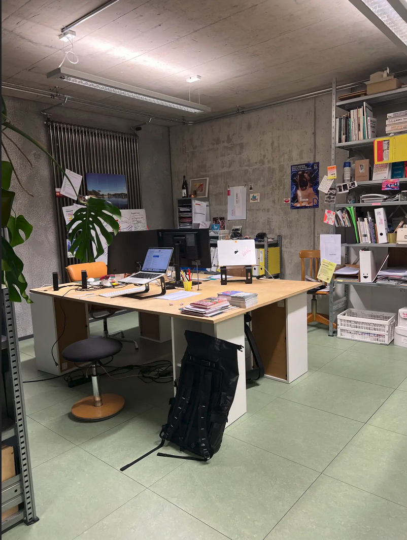 Der Platz ist möbliert (Tischinsel, Stühle), inkl. Mitbenützung Briefkasten, Mitbenützung von Sitzungsraum, Teeküche, Drucker